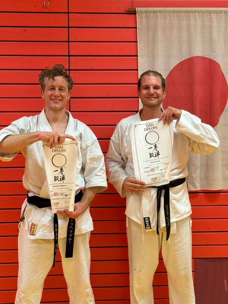 Am 02.08.2024 konnte unser Trainer Florian Fendt nach vielen Jahren intensivem Training und Hingabe seine Prüfung zum 3. DAN im Kempo-Karate erfolgreich ablegen. Gemeinsam mit seinem Prüfungs-Partner Christoph Höppner überzeugte er die Prüfer Björn Anton und Michael Mair (beide 5. DAN) in Garching bei München.